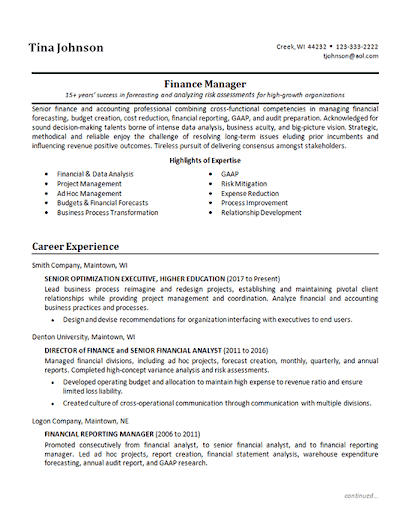 Where do you want the hiring manager to focus on? Add depth to your professional manager resume with other sections. Your experience and education should stick you to the job like a concentric merger.